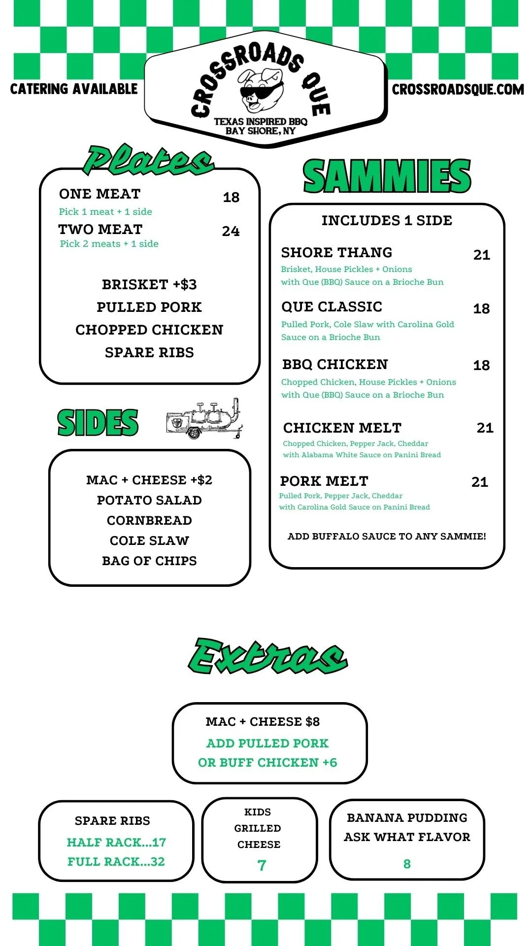 Hometown Texas-style BBQ slow cooked over a blazing fire right here on Long Island.