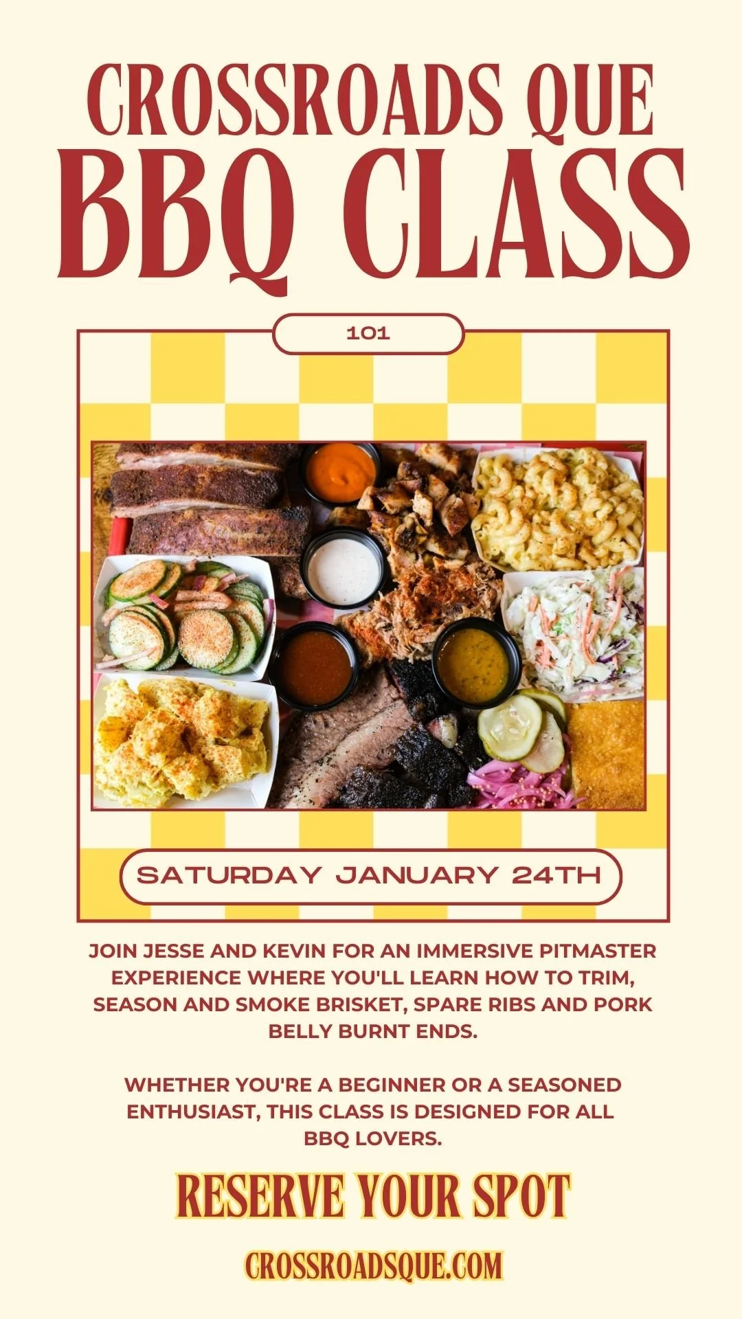 All attendees will go home with a swag bag including Crossroads Que t-shirt, house rubs and sauces plus plenty of BBQ knowledge!